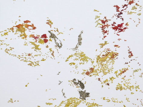 本展「水流」は、水という移ろいゆく存在を手がかりに、土地の成り立ちや時間の重なりに触れようとする試みである。各地で出会った水辺の風景を、自ら撮影した写真と、その場で採取した土によって描くことで、流れる水と、そこに堆積し続ける大地の関係が画面に編み込まれていく。風景は一瞬の像ではなく、土地の記憶を内包した厚みとして立ち現れる。